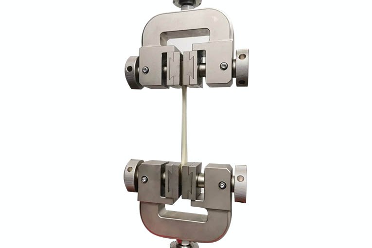 气动夹具通过夹具内的气缸驱动双侧杠杆臂夹持试样。通过调节输入气压可控制夹持力,即使试样在夹持区域收缩变薄,夹持力也可以保持恒定,从而保证夹具在夹持过程中对试样的“跟随性”。气动夹具可以通过脚踏开关或安装在夹具上的空气阀进行操作,操作比螺纹夹具更快捷、更简单。